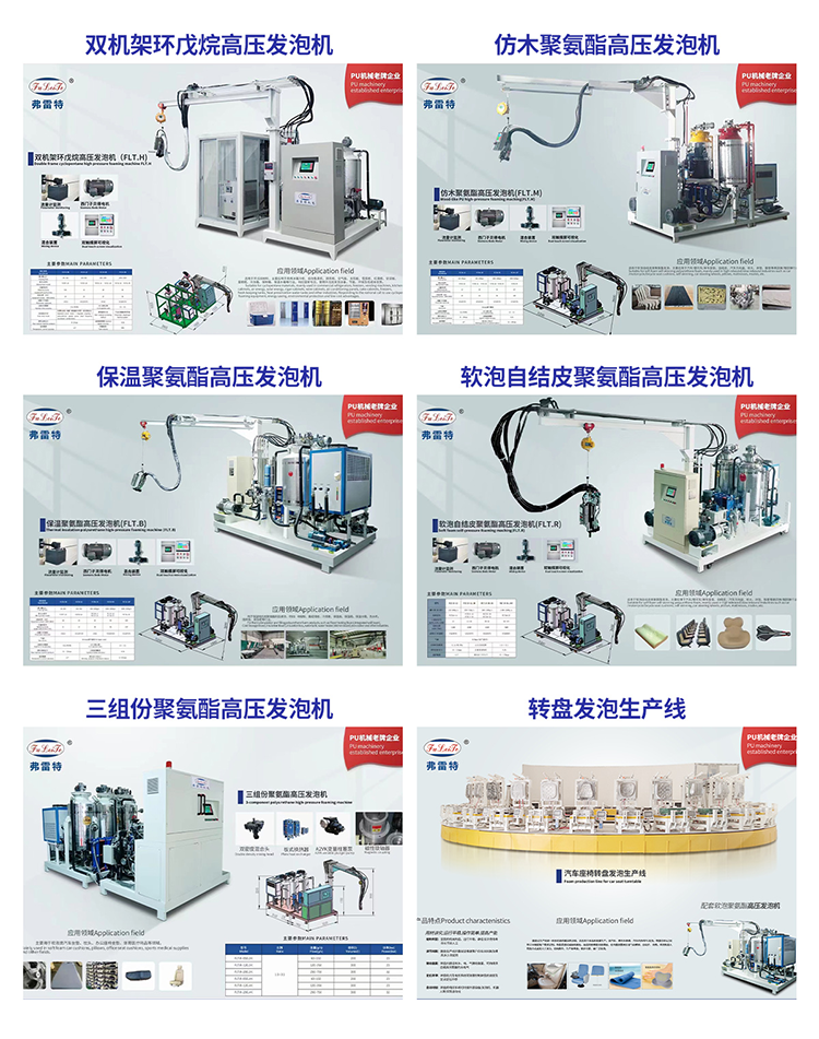 2023年弗雷特聚氨酯發泡機產品著重在環戊烷領域、保溫填充領域、軟泡自結皮高回彈、仿木類領域、環形發泡生產線等。只有想不到,沒有做不到!