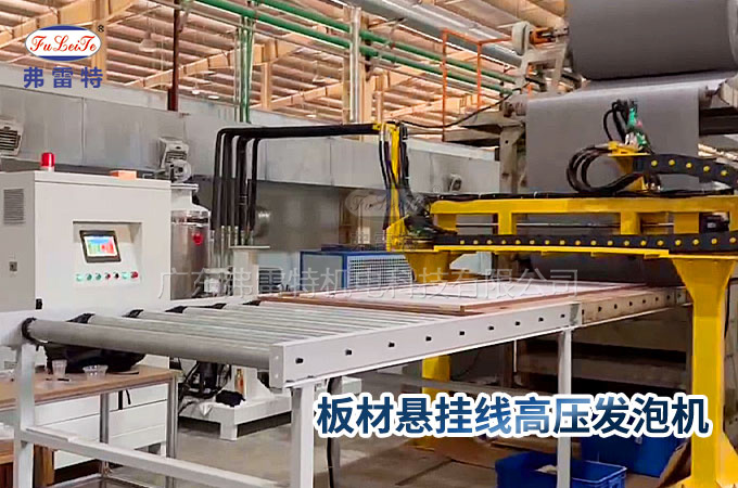 弗雷特機電為廈門的家具廠客戶定制了一臺我們新研發的高效懸掛線板材聚氨酯高壓發泡機設備,該設備主要應用于仿木家具類板材、硬泡類仿木床板、仿木地板、保溫板材、仿石板材等。