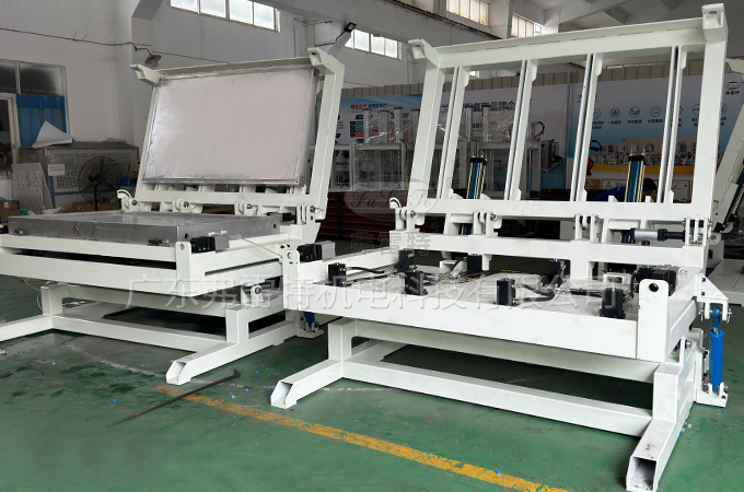 聚氨酯發泡模架是發泡模具的自動啟動模架,用于模具的開啟與閉合,可控制張合角度,自動鎖死等。主要組成部分液壓站、主油缸、鎖緊氣缸、傾斜油缸,氣囊,電控系統,報警系統。