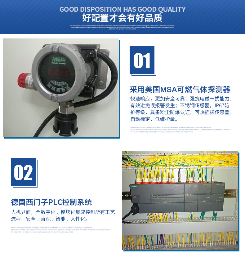 具有西門子PLC+雙變頻多功能安全裝置,38個智能自檢保護點,獨立防靜電房,烷氣濃度等級自動識別系統(tǒng),自動2-3級抽風系統(tǒng),西門子防爆電機,獨立導地裝置,槍頭引線靜電導出裝置等,外接2組獨立對比恒溫,12~100種噴灌定時定量控制,開槍溫度鎖定,故障自檢報警等,本系統(tǒng)采用自清潔/止逆/防濺粘/新型V型發(fā)泡槍(實現(xiàn)3次混合功能),結構美觀、操作方便。根據(jù)客戶實際情況,還可以一機雙槍使用,雙槍自動切換,變頻節(jié)能、應用自如,專為客戶量身訂做發(fā)泡完善系統(tǒng)。
