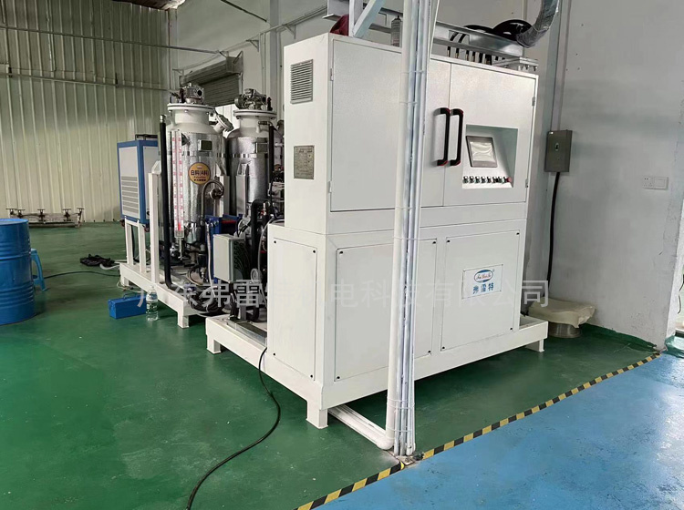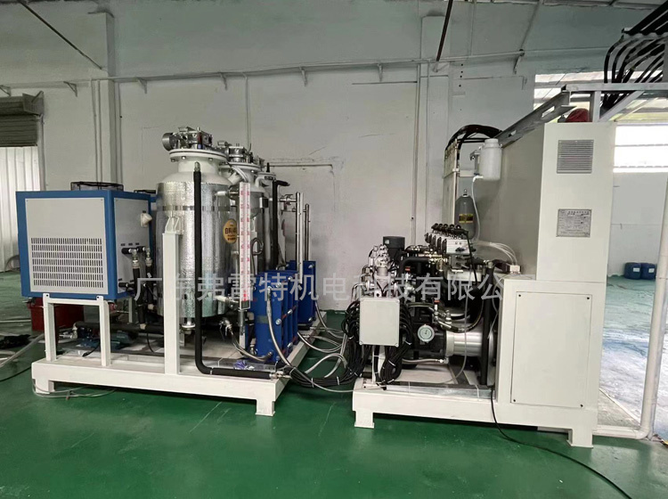 三組份、多組份聚氨酯高壓發泡機是將多種不同配方的生產工藝通過設備的配置及程序設定融合到一臺機器去完成。例如:三組份聚氨酯高壓發泡機的設定條件是B+A1或A2,當工藝要求是B+A2時,系統將自動轉換成設定的要求B+A2進行灌注。多組份的設定條件是B1+A1---B2+A2---B3+A3最多6組份3種配方。