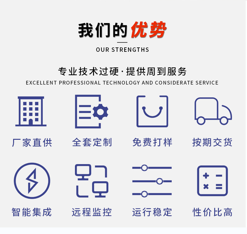 1、電氣控制: 采用以西門子PLC、施耐德配件為主的電氣控制系統,全模塊化集成控制所有工藝流程,操作簡單,智能穩定。