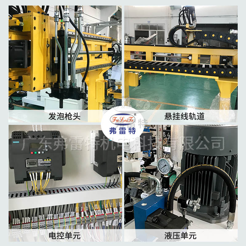 設備采用龍門式框架結構,其中發泡槍橫移的方向定義為 X 軸、發泡槍的升降方向定義為 Z 軸。