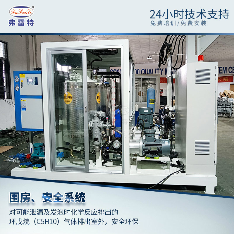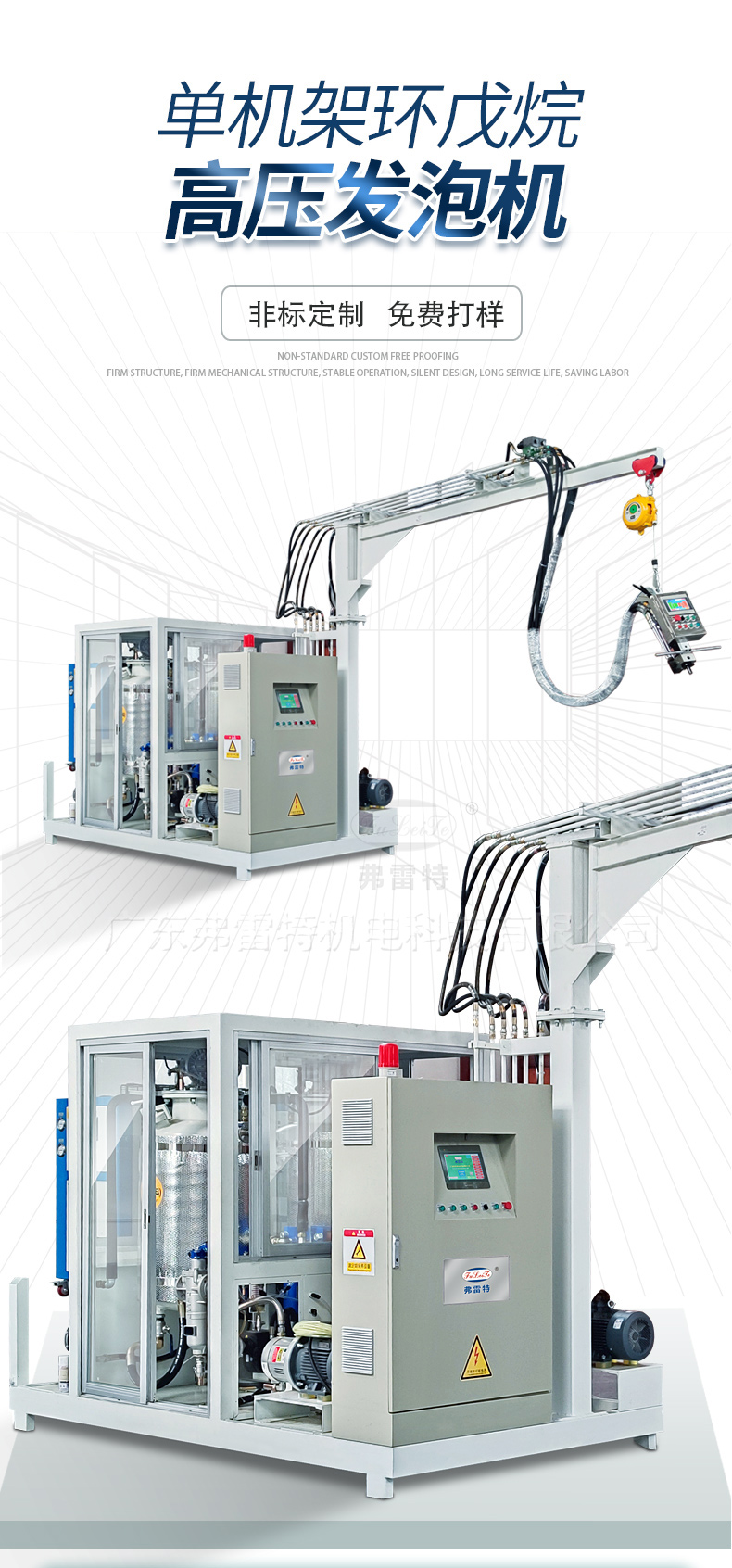 環戊烷作為硬質聚氨酷泡沫的新型發泡劑,用于替代對大氣氧層有破壞作用的復氧(CFCS),現已廣泛應用于生產無氟冰箱、冰柜行業以及冷庫、管線保溫等領域,無氟發泡及環成烷安全檢測,警報及處理系統令環成院發泡機的使用變得更加安全和可靠,隨著蒙特利兒等公約規定的禁用ODS期限的臨近,CFC和HCFCS類產品不久將被禁用,環成烷將成為聚氫酷發泡劑領域的主角。因此,環戊烷發泡機用途相當廣泛,滿足市場需求,順應環保趨勢。