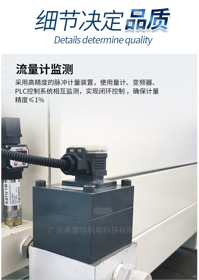 流量計監測:采用高精度的脈沖計量裝置,使流量計、變頻器、PLC控制系統相互監測,實現閉環控制,確保計量精度。