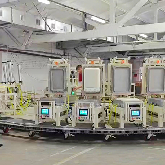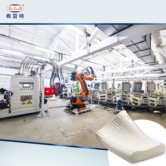 這是一套聚氨酯枕頭發(fā)泡生產(chǎn)線,包括一套軟泡聚氨酯高壓發(fā)泡機(jī),一個直徑9.5米的轉(zhuǎn)盤線,可放置28個工位,一套灌注機(jī)器人和一套脫模劑機(jī)器人,實現(xiàn)智能自動化高效生產(chǎn)。團(tuán)隊與客戶合作緊密,設(shè)備安裝、測試和調(diào)試順利完成,贏得客戶滿滿贊譽。