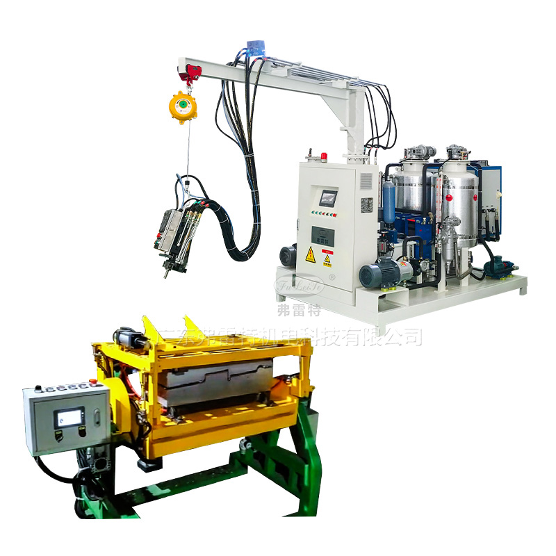 將兩組份原料,分別儲存在兩個儲料罐中,通過兩臺高精度柱塞計量泵,輸送至混合槍頭,通過高壓對射讓物料充分混合,高壓碰撞,泡孔細膩,大大提高產品質量。