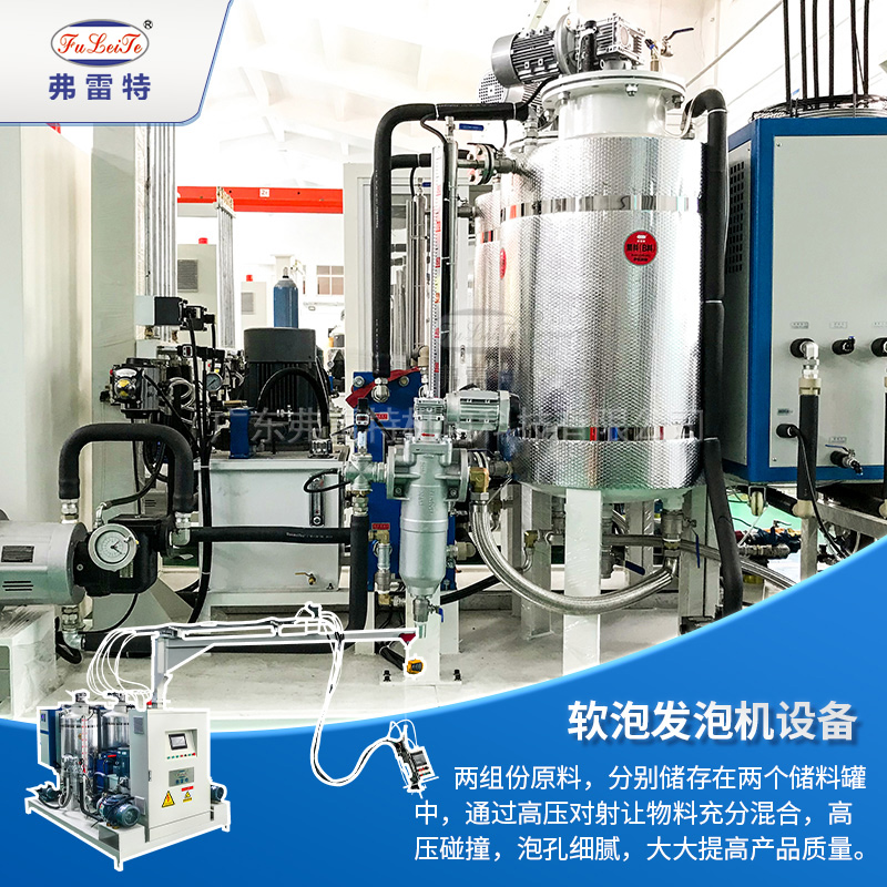 將兩組份原料,分別儲存在兩個儲料罐中,通過兩臺高精度柱塞計量泵,輸送至混合槍頭,通過高壓對射讓物料充分混合,高壓碰撞,泡孔細膩,大大提高產品質量。