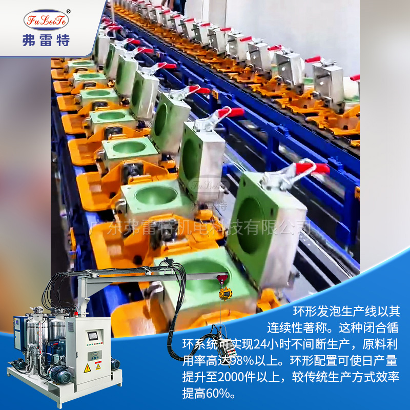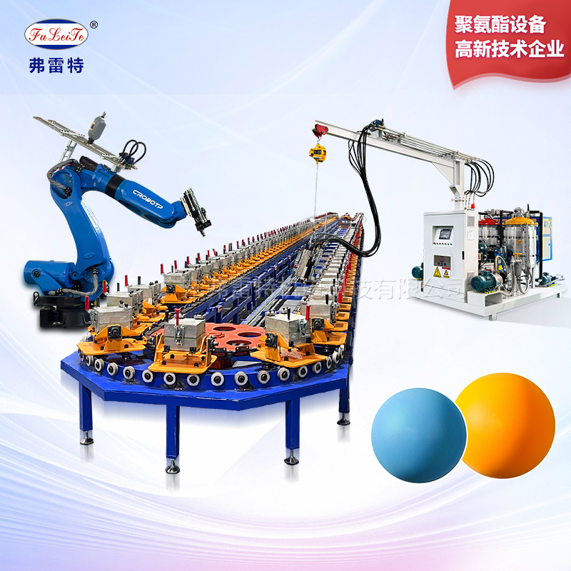 這是一套集成了軟泡聚氨酯高壓發泡機、六軸聯動灌注機器人和73米長140個工位的自動化環形發泡生產線發泡設備。140個模具工位晝夜流轉,核心發泡環節實現全程自動化,人機協同使日均產能突破3000件,同時將產品合格率穩定在99.2%以上。弗雷特環形產線用科技賦能人力,用經驗優化算法。廣東弗雷特是一家國家級高新技術企業,科技中小型企業,創新型企業和專精特新企業。軟泡聚氨酯高壓發泡機參數: