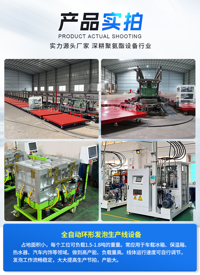 這是一條長(zhǎng)33米帶有40個(gè)工位的車載冰箱大型環(huán)形發(fā)泡生產(chǎn)線。這條生產(chǎn)線的優(yōu)點(diǎn)是占地面積小,每個(gè)工位可負(fù)載1.5-1.8噸的重量。常應(yīng)用于車載冰箱、保溫箱、熱水器、汽車內(nèi)飾等領(lǐng)域。做到高產(chǎn)能、負(fù)載量高。廣東弗雷特是一家國(guó)家級(jí)高新技術(shù)企業(yè),科技中小型企業(yè),創(chuàng)新型企業(yè)和專精特新企業(yè)。