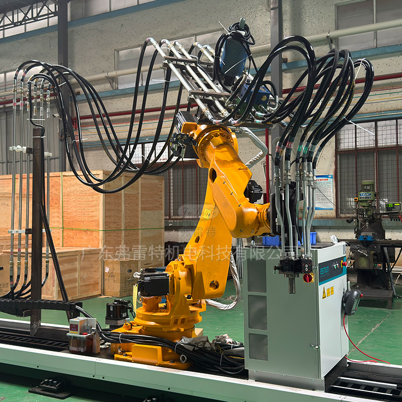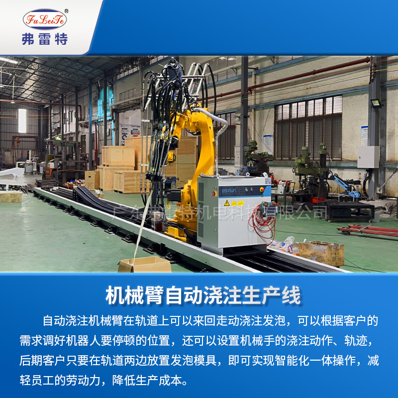自動澆注機械臂在軌道上可以來回走動澆注發泡,可以根據客戶的需求調好機器人要停頓的位置,還可以設置機械手的澆注動作、軌跡,后期客戶只要在軌道兩邊放置發泡模具,即可實現智能化一體操作,減輕員工的勞動力,降低生產成本。弗雷特可根據客戶的需求進行個性化定制,提供全套服務,我們擁有專業的設計研發團隊、生產團隊,歡迎需要的朋友聯系我們廣東弗雷特!