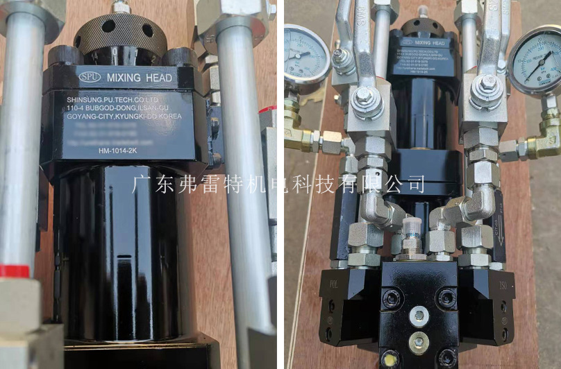 1、定期或必要時清潔混合頭、在使用一段時間后,由于聚氨酯殘余反應物不斷積累,會導致混合頭上如下部位發生堵塞,使組分壓力升高或不穩定甚至造成超壓停機:
