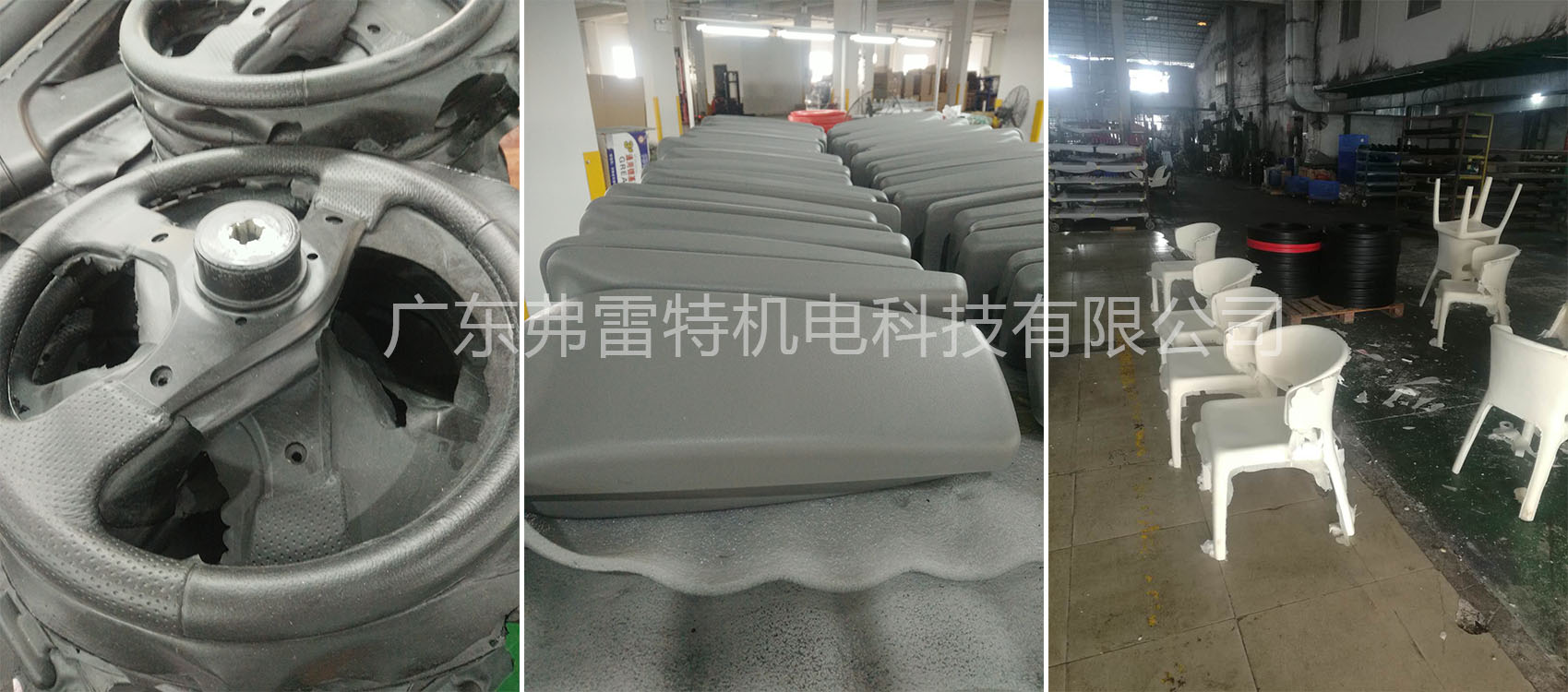 弗雷特發泡設備在汽車領域的應用中包含了汽車頂棚、天窗包邊、擋風玻璃、包邊、自結皮方向盤、座椅、頭枕及外裝飾大包圍的生產應用,可為客戶提供專用的高壓發泡機、發泡模具及生產線、機械臂等。公司設備在其他軟泡自結皮領域中也得到應用廣泛,例如家居沙發、地毯地墊、玩具工藝品、制鞋制革等生產廠家。